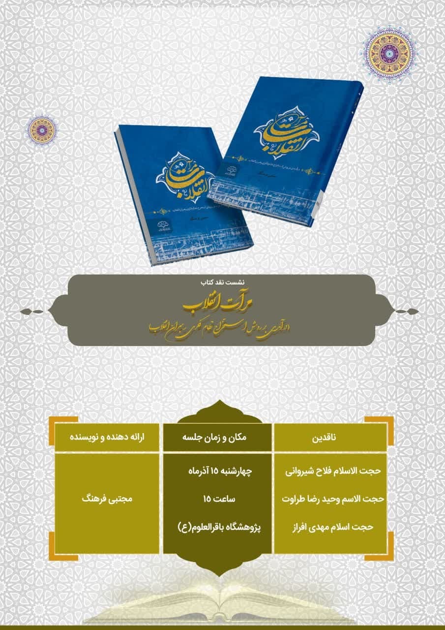 به همت پژوهشکده باقرالعلوم علیهالسلام نشست نقد کتاب «مرآت انقلاب» برگزار میشود.