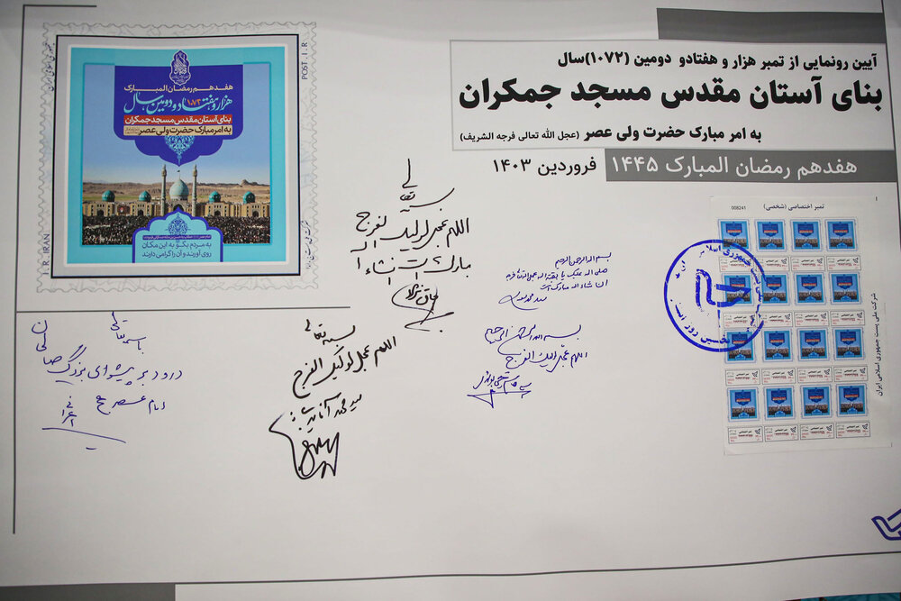 رونمایی از تمبر هزار و هفتاد و دومین سال بنای مسجد مقدس جمکران