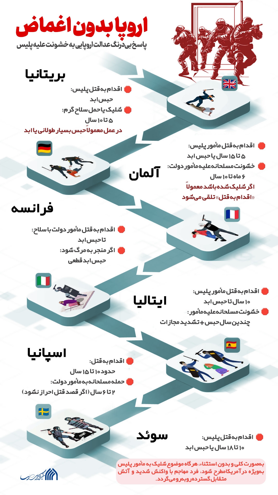 تقریباً در همه کشورها، شلیک به مأمور پلیس از شدیدترین جرایم محسوب میشود. در این اطلاع نگاشت پاسخ بیدرنگ عدالت اروپایی به خشونت علیه پلیس را مرور میکنیم.