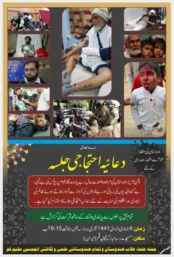 وطن عزیزہندوستان کی موجودہ صورت حال، بے یارو مددگار عوام پرپولیس کی بے رحمی ،بے گناہ قیدیوں کی رہائی اور بے نواوں کی آواز سے آواز ملاتے ہوے ظالم کی نابودی اور مظلوم کی حمایت کے لیے دعائیہ احتجاجی جلسہ کا اہتمام کیا گیا ہے ۔