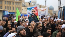 مظاہرے میں شریک لوگ نعرے لگا رہے تھے کہ شہادت جنرل قاسم سلیمانی کا مقدر تھا لیکن امریکا کو اس وحشیانہ اقدام کا جواب دینا ہوگا ۔